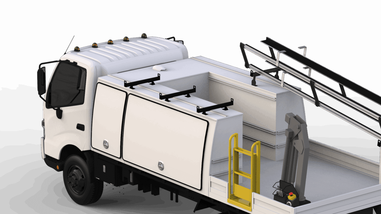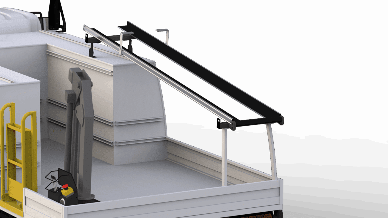 Incorporates restraint strap, ladder hooks and roller for easy ladder storage. Anti-theft ladder cable lock also available.