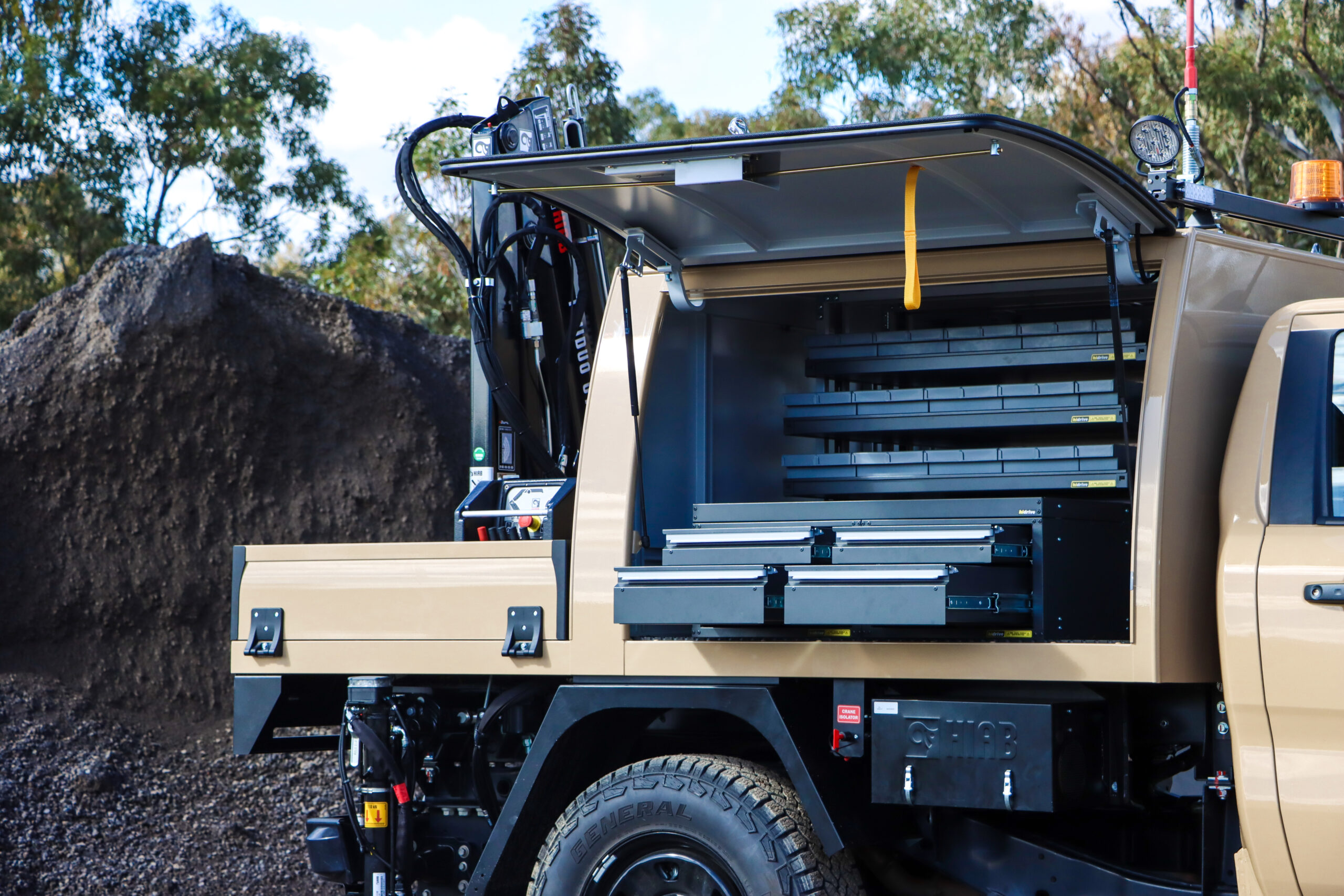 Ford Ranger Super Duty offers a 4,500 kg GVM and exceptional towing capacity, redefining the light truck category. To leverage this capability, Hidrive’s lightweight yet durable aluminium service bodies are engineered to maximise payload without compromising vehicle performance. For fleet managers, this means less downtime, better efficiency, and vehicles built to support your mobile workforce every day.